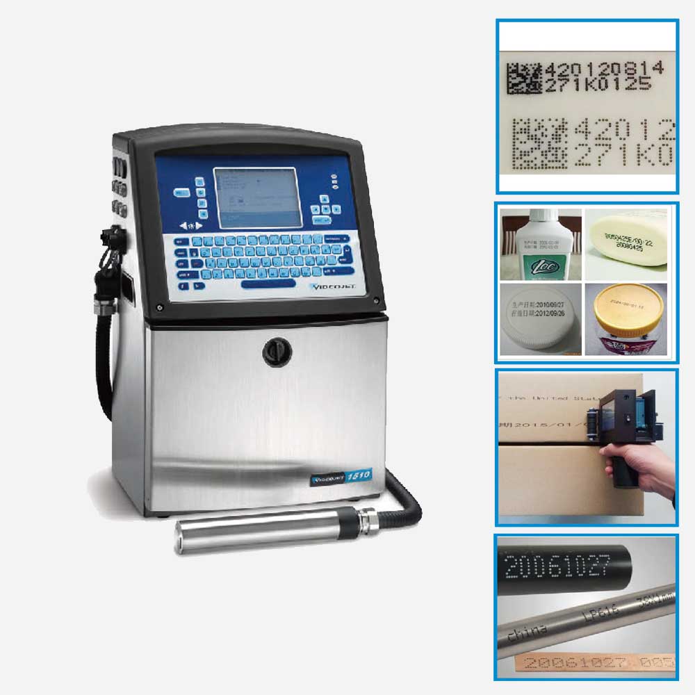 小字符喷码机可以对多种形式大大小小的包装进行非接触式地 喷印批号、标识、产品名称、有效期、号码等;在包装某个部位使用隐形墨水进行标识, 这种隐形墨水只有在UV灯照射下,才能被阅读,可利用多种墨水防伪;喷印条码进行防伪追溯,高速喷印满足高速生产线环境。