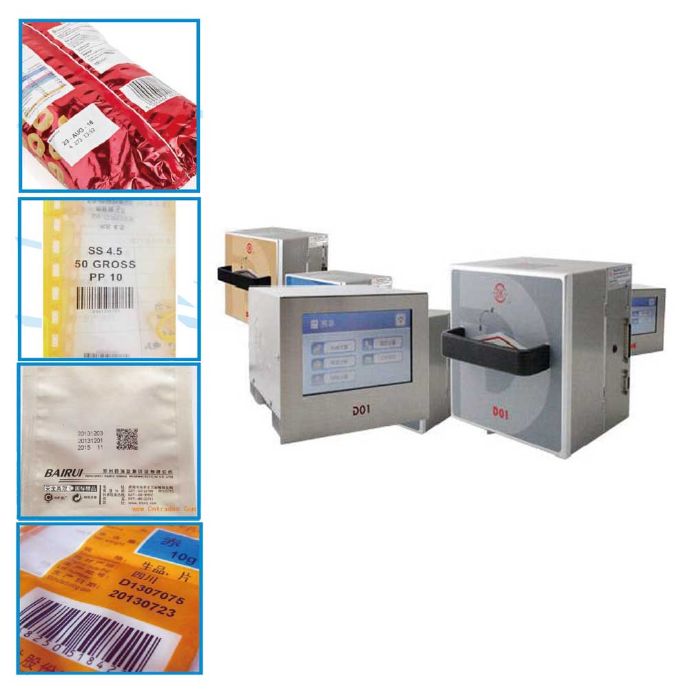 热转印打码机又名TTO,是打码机的一种,和普通墨轮打码机对比,没有固定字粒,打码机有集成块(打印头)。热转印打码机的适用范围:可以在软薄材质的包装标签或光滑的卡片表面在线打印; 需要打条形码的(任何)场合;要打印实时信息的场合可以精确到出产时间,热转印打码机分连续式和间歇式两种,连续式需配备同步器,而间歇式需要硅胶垫。热转印打码机的耗材是热转印色带。色带分为三种类型,蜡基Wax、树脂Resin、蜡和树脂的混合基Wax/Resin Blend. 价格和附着力、熔点 树脂基>蜡和树脂的混合基>蜡基, 主要用于速食 糖果 面包 冷鲜食品(冻水饺) 冷冻食品 新鲜蔬菜 湿纸巾 固体粉末(奶粉)等任何软包装行业。