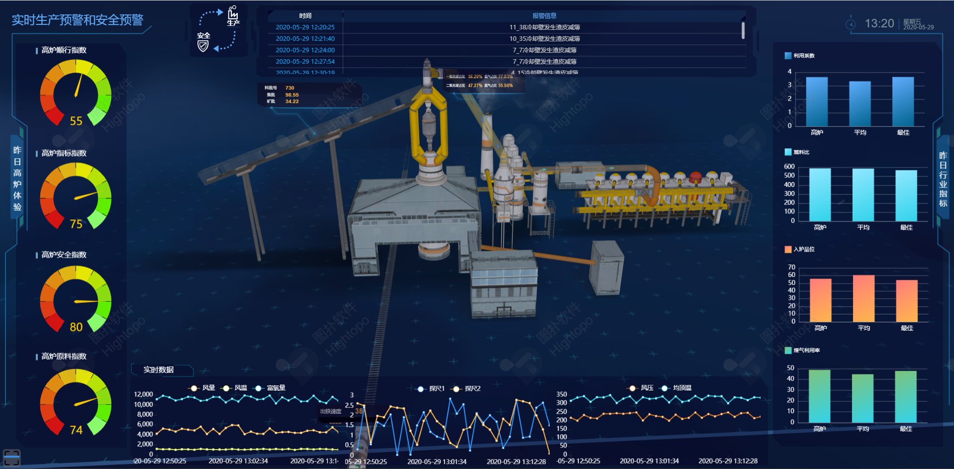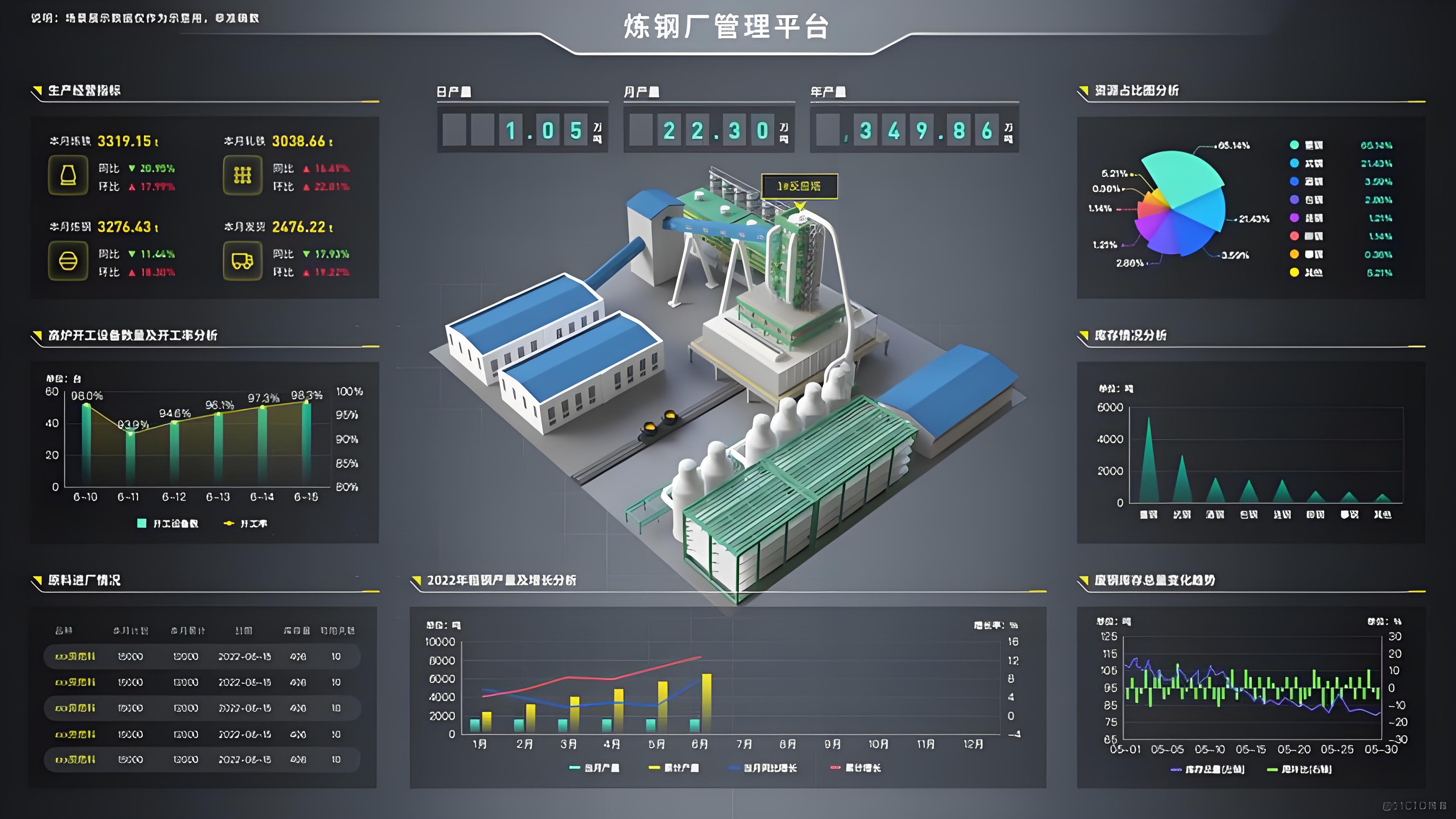 生产可视化通过图形化方式展示生产流程,提高生产效率和安全性。 实时监测生产参数和异常情况,预防事故发生,并为生产决策提供科学依据。 技术可扩展性强,可应用于不同场景,助力企业数字化转型和智能化升级