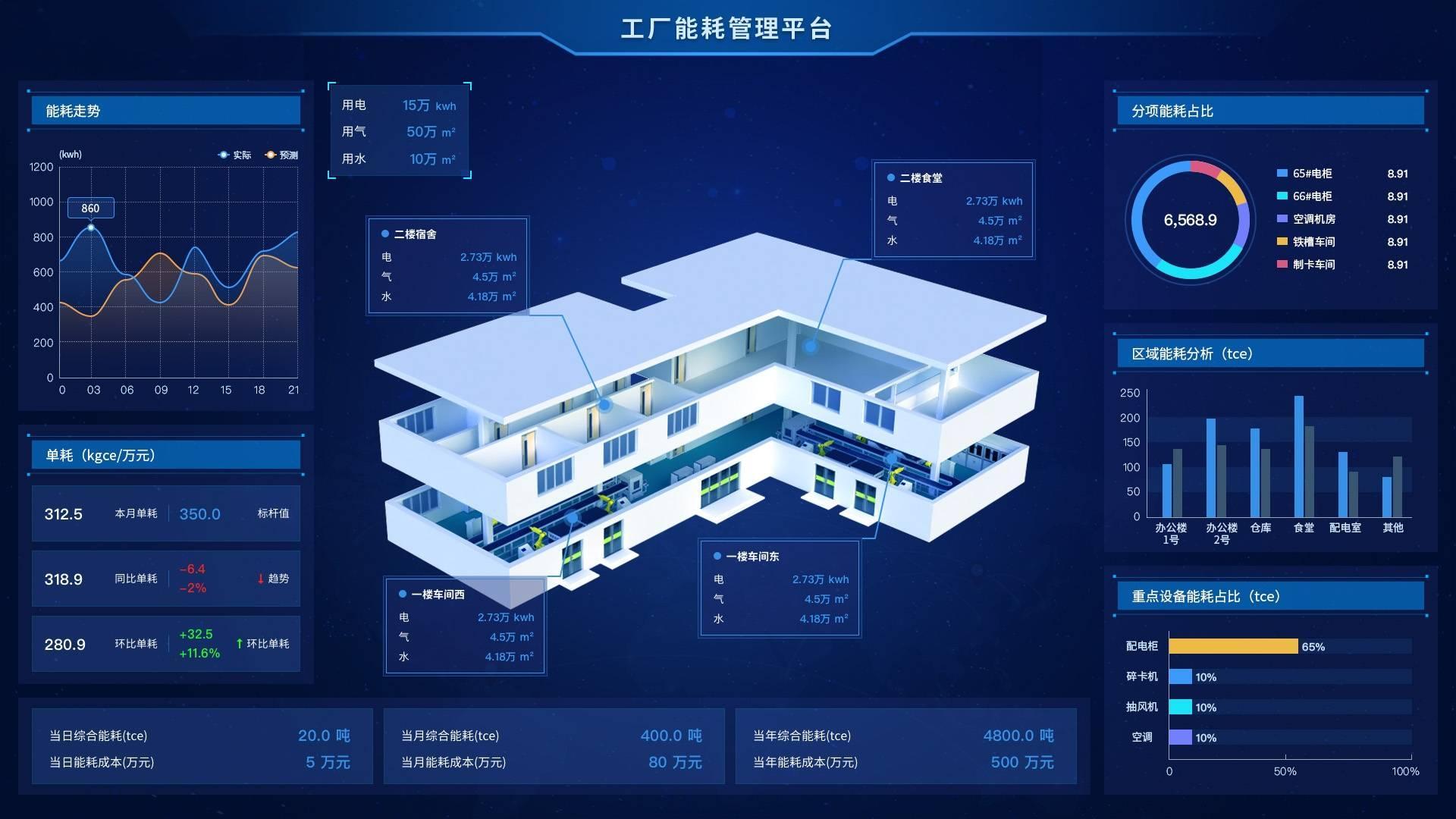 智慧工厂可视化管理平台,以三维场景为依托、生产数据为核心、生产业务为纽带,实现工厂园区、车间、流水线、设备的逐级可视, 并整合各个流程节点之间的数据及信息对生产过程进行综合监管及全局分析,形成智慧工厂管理的新模式。